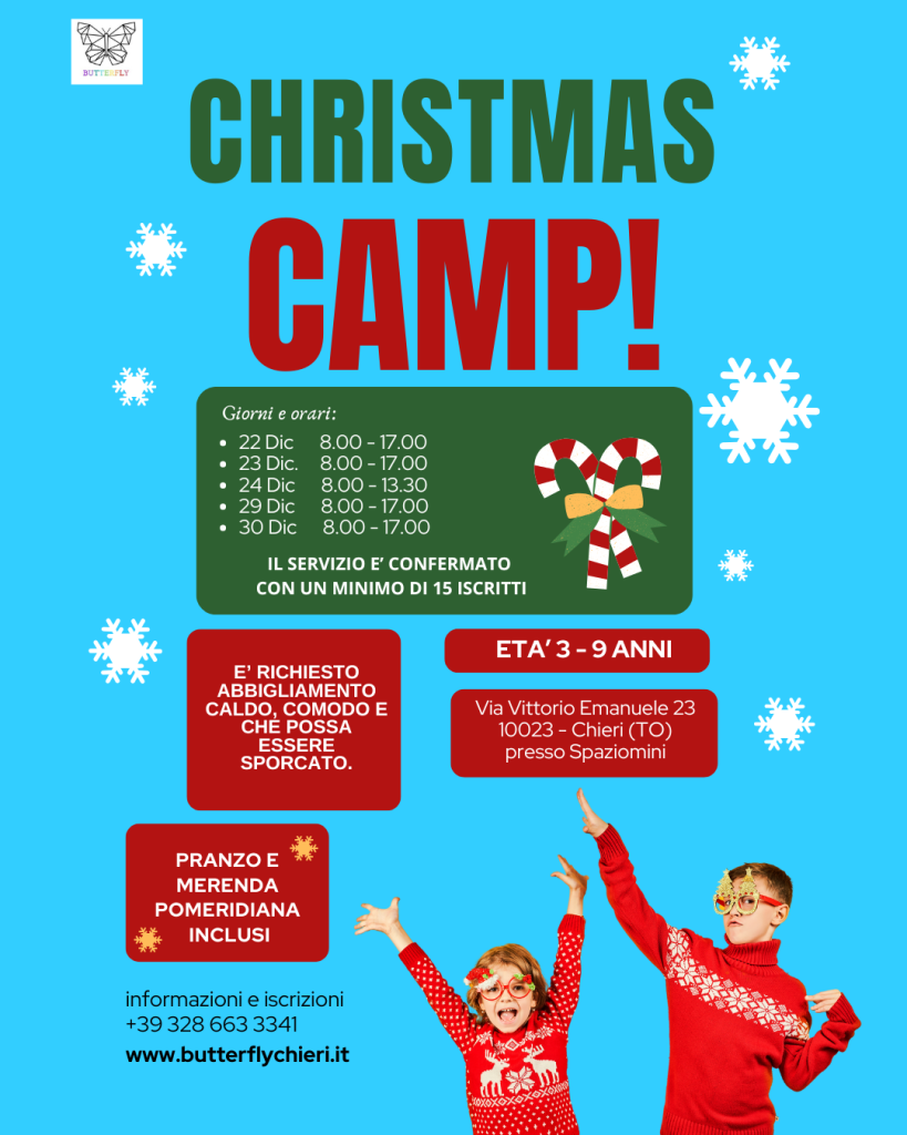 Il camp verrà attivato con un minimo di 15 iscritti.📩 Info: info@butterflychieri.it – 328 663 3341